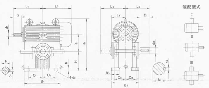 其中T-上置蝸桿;B-下置蝸桿;W-焊接機體和機蓋,未注為鑄造結構。