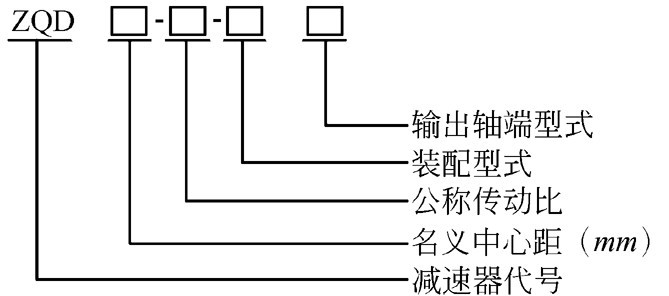 ZQ型大速比減速器,原中心距為1000mm,增加一級中心距250mm,傳動比為223.8、代號為V,裝配型式為3,圓柱形軸端輸出,標記為: