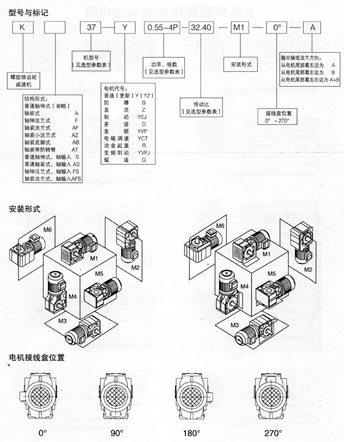 2、安裝方式:底腳安裝、空心軸安裝、法蘭安裝、扭力臂安裝、小法蘭安裝。
