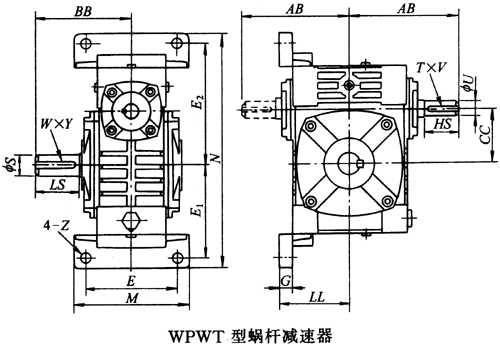 WPWT40、WPWT50、WPWT60、WPWT70、WPWT80、WPWT100、WPWT120、WPWT135、WPWT155、WPWT175、WPWT200、WPWT250、型蝸輪蝸桿減速器主要尺寸