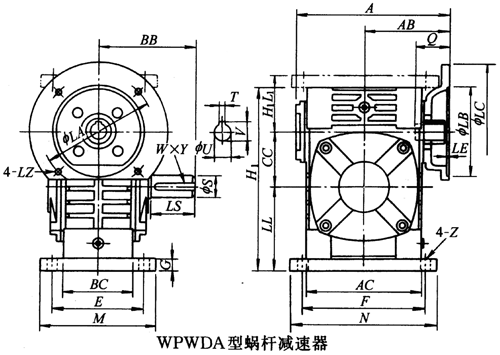 WPWDA型蝸桿減速器主要尺寸 /mm
