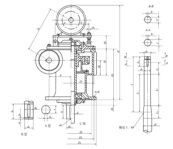 在減速機結構上,出軸軸承跨距特大,增強了剛性;C型軸頭出軸采用空心軸套結構,攪拌軸可直接插入減速器。電動機通過三角膠帶與減速器輸入端相連,能起緩和作用,當需要時可設計成防靜電膠帶傳動或無級變速帶傳動。該系列減速器可直接與TⅠ、TⅡ、TⅢ及TB型搪玻璃反應罐專用機架配套,也可選擇WJ、DJ、SJ及XD、XS系列帶過渡接板的機架。