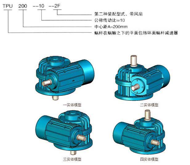 A:TPG-通用型平面包絡(luò)環(huán)蝸桿減速器,蝸桿可在蝸輪之上、之下、水平之側(cè)或垂直在側(cè)